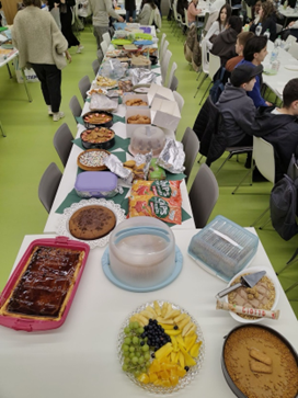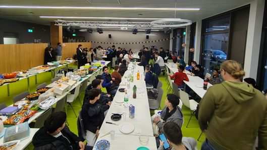 Alle Teilnehmenden brachten etwas zu essen mit, sodass ein großes und vielfältiges Buffet entstand. Von herzhaften Speisen bis hin zu süßen Leckereien war alles dabei. So konnten alle miteinander teilen, neue Gerichte probieren und einen gemeinsamen Abend in der Schule genießen. Es wurde gemeinsam gegessen, gelacht und Zeit miteinander verbracht. Das gemeinsame Fastenbrechen war eine schöne Gelegenheit, unterschiedliche Traditionen kennenzulernen und das Gemeinschaftsgefühl an unserer Schule zu stärken.