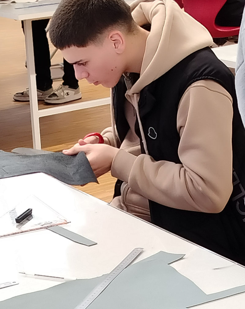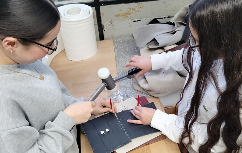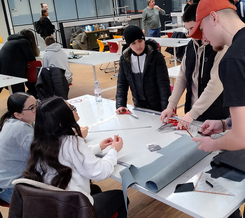 Am 09.02.2024 waren 5 weitere unserer Schüler an der Kerschensteiner Schule in Feuerbach zu Gast um den Beruf des Sattlers kennenzulernen. Mit Unterstützung eines Auszubildenden der Firma Daimler ging es an die Arbeit. | ![]() |